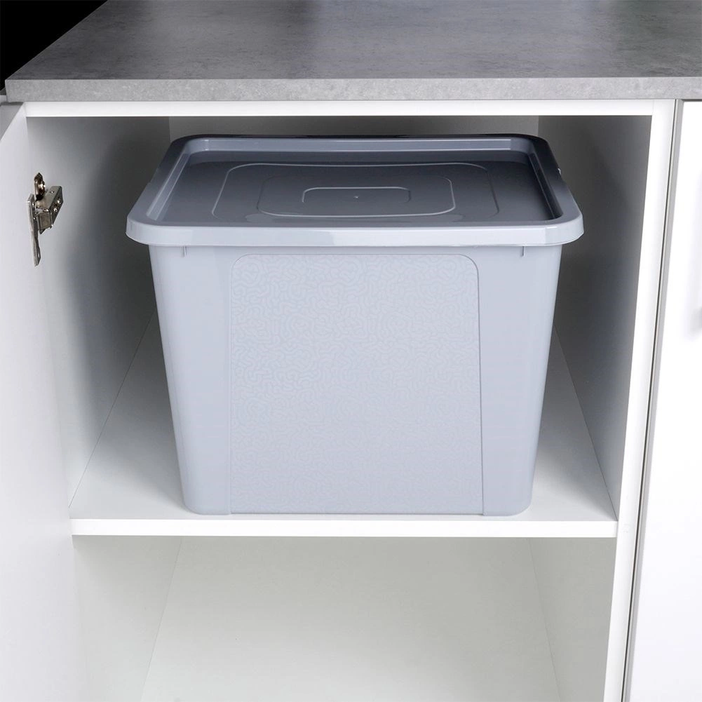Praktický úložný box s víkem o objemu 30 l pomůže udržet pořádek v domácnosti, kanceláři i dílně. Je lehký, ale odolný, má zaoblené rohy pro bezpečné používání a zacvakávací víko chrání obsah před prachem a vlhkostí. Díky univerzálnímu provedení v světlé šedé barvě se hodí do skříní, polic i regálů.