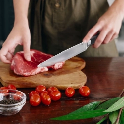 Nůž je skvělou volbou pro každodenní přípravu jídel – od jemného krájení ovoce a zeleniny, přes sekání bylinek, až po porcování masa. Při správném používání si dlouho uchová ostří a stane se nepostradatelným pomocníkem v každé kuchyni.