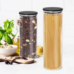 Díky průhlednému tělu máte vždy perfektní přehled o obsahu i množství. Minimalistický design s černým víčkem skvěle ladí s moderní kuchyní a podporuje přehledné skladování suchých potravin – od těstovin a rýže po sušené ovoce či houby.