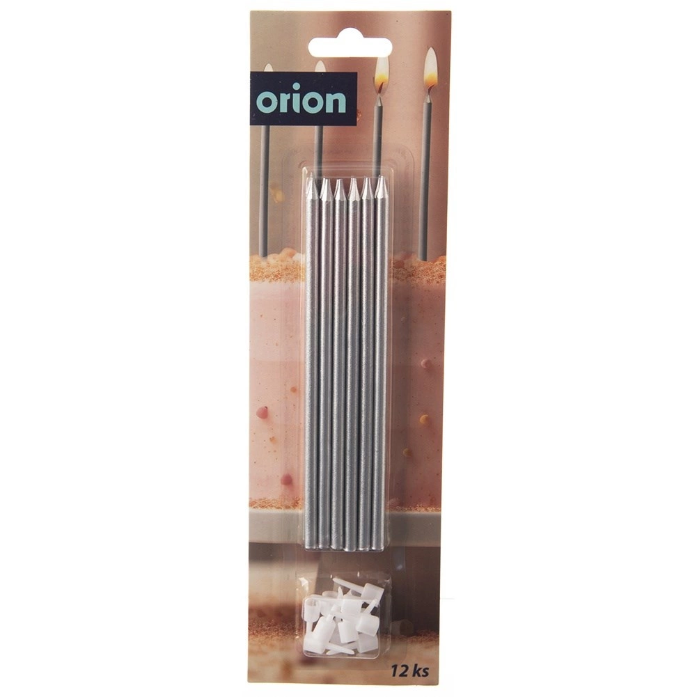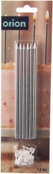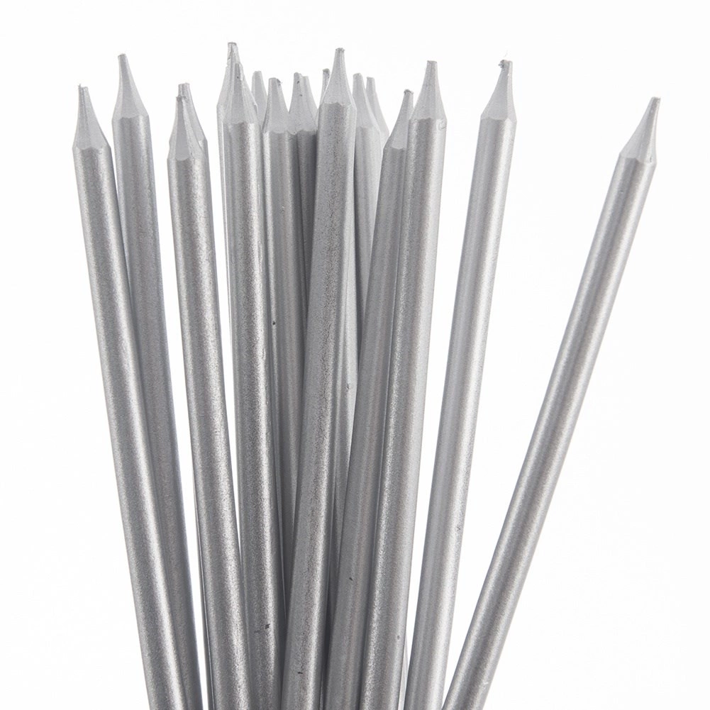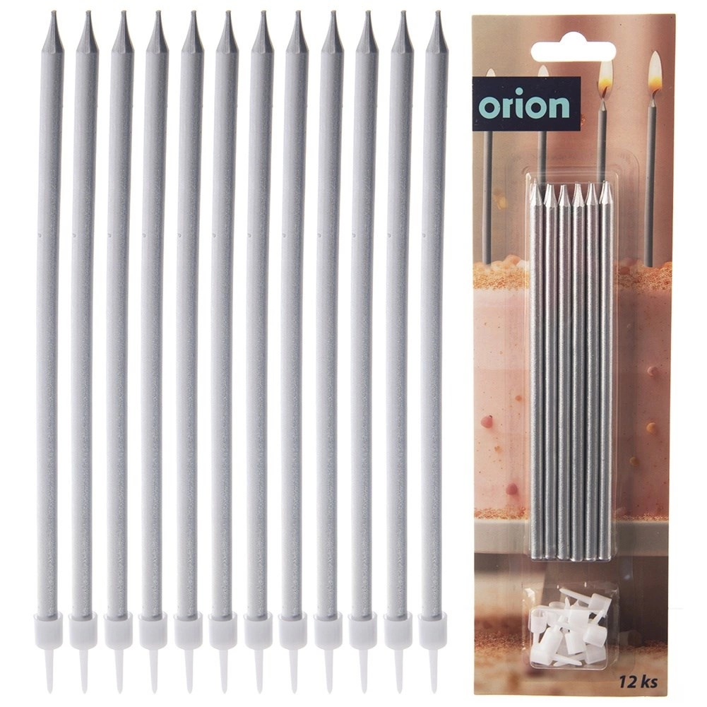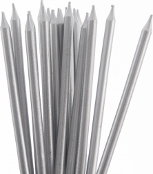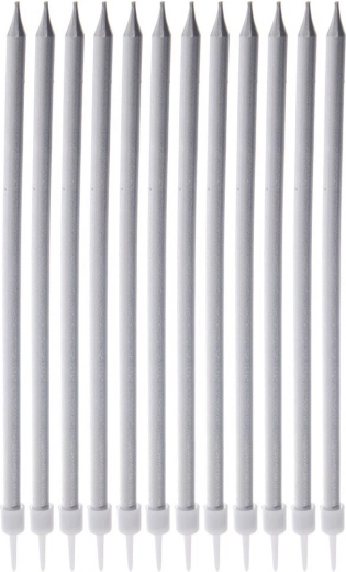 Dlouhé stříbrné svíčky na dort 14,5 cm, 12 ks