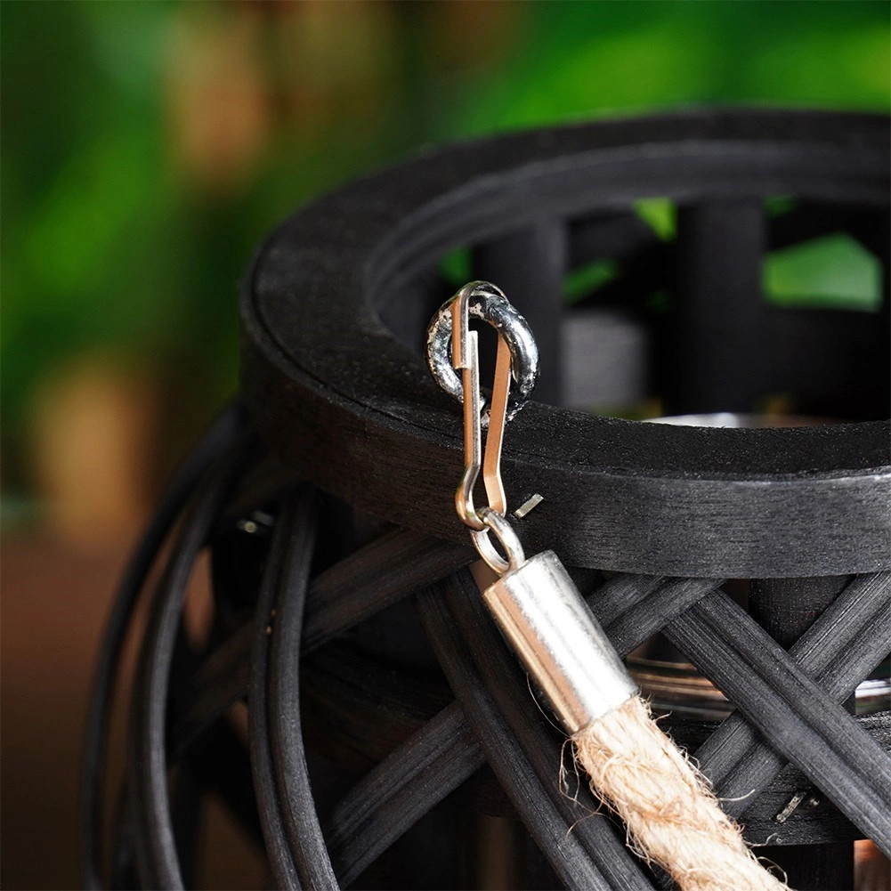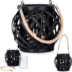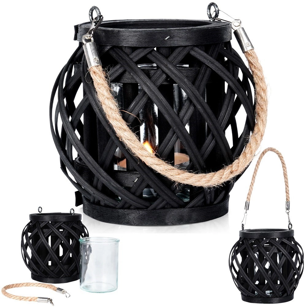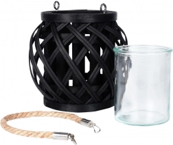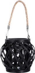 Tento dekorativní lampion z přírodního bambusového dřeva lakovaného na černo je ideální pro večerní posezení na balkoně, terase i v obývacím pokoji. Otevřená výpletová konstrukce vytváří efektní světelné odlesky a dodá prostoru příjemnou, uklidňující atmosféru.