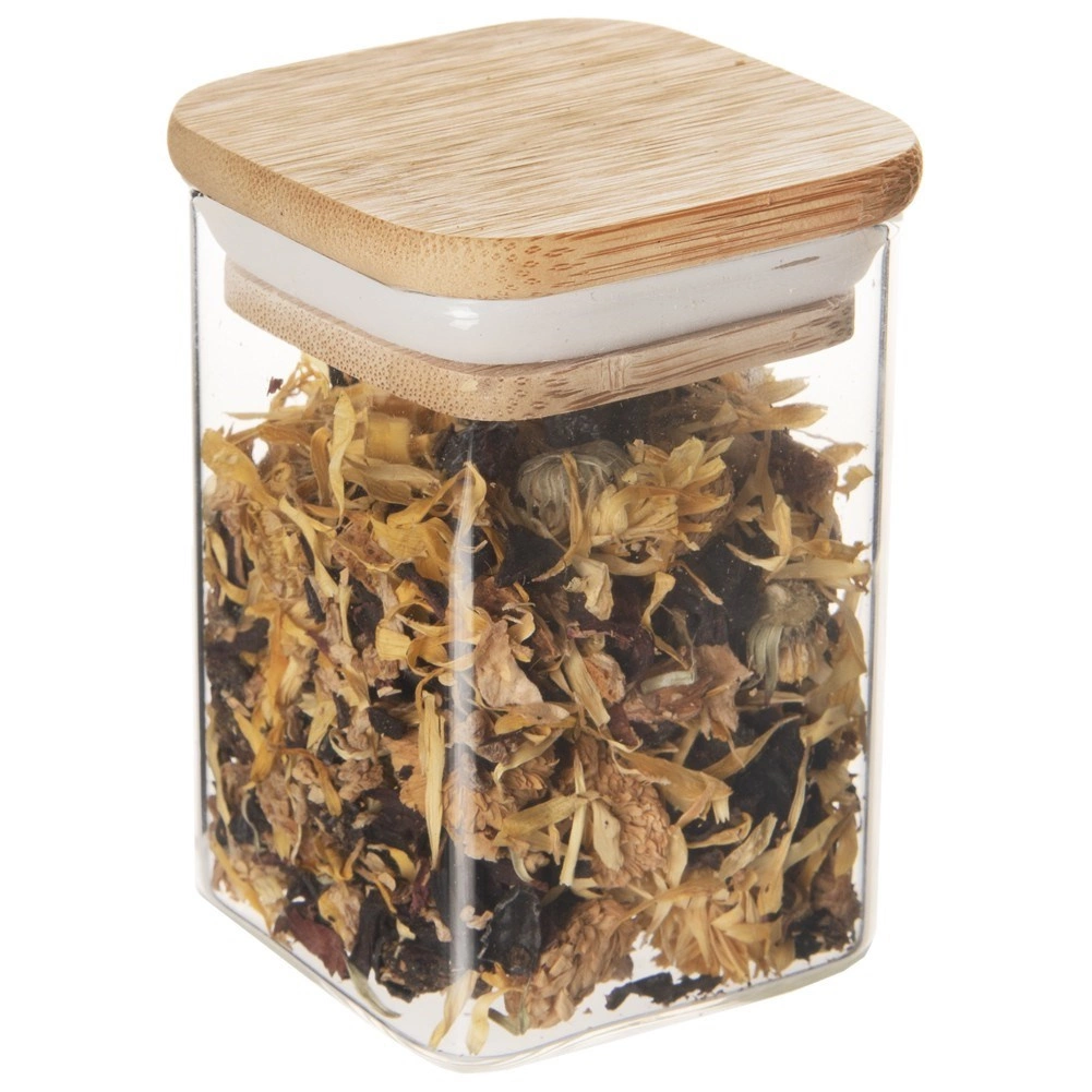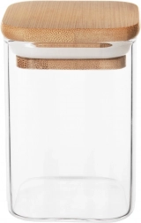 Elegantní skleněná dóza o objemu 200 ml s bambusovým víčkem a silikonovým těsněním udrží vaše potraviny déle čerstvé. Je vyrobena z odolného borosilikátového skla, má kompaktní rozměry 6 × 6 × 8,5 cm a moderní čtvercový tvar. Ideální na kávu, čaj, koření, ořechy či další sypké suroviny. Díky vzduchotěsnému uzavření chrání vůni i chuť a skvěle se hodí do každé kuchyně.