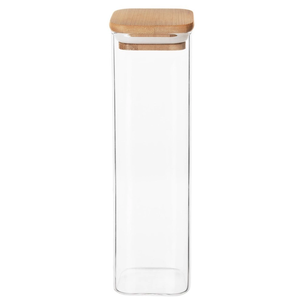 Udržujte pořádek a čerstvost potravin díky praktické skleněné dóze s bambusovým víčkem a silikonovým těsněním. Čiré borosilikátové sklo je odolné vůči teplotním změnám a umožní vám okamžitou kontrolu obsahu. Minimalistický vzhled a přírodní bambus z ní dělají elegantní doplněk kuchyně.