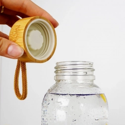 Stylová a odolná skleněná láhev pomůže dodržovat pitný režim doma, v kanceláři i na cestách. Borosilikátové sklo lépe snáší teplotní změny, takže si bez starostí vychutnáte vodu, limonádu, smoothie i horký čaj. Bambusové víčko se smyčkou umožňuje pohodlné přenášení a zavěšení.
