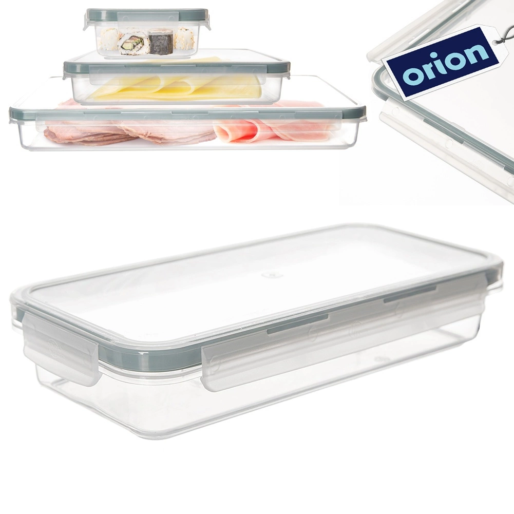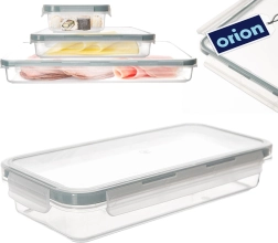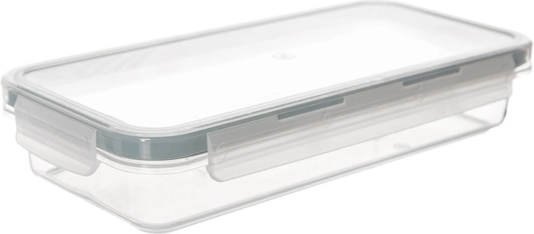 Univerzální nízký potravinový box z odolného, průhledného plastu je skvělý pro uchovávání, přepravu i organizaci jídel. Díky pevnému víku se 4 klipy a kvalitnímu silikonovému těsnění je obsah chráněn před vzduchem a vlhkostí, takže potraviny zůstávají déle čerstvé.