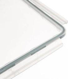 Víko se čtyřmi klipy a kvalitní silikonovou vložkou brání úniku tekutin a udržuje potraviny déle čerstvé.