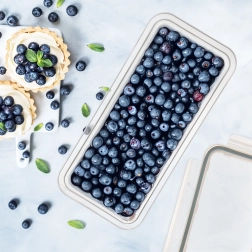 Nízký profil a ploché víko šetří prostor v lednici a umožňují bezpečné stohování více krabiček.