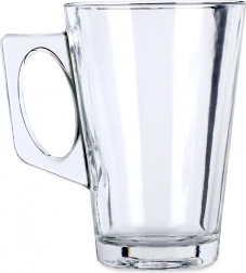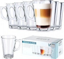 Elegantní sada šesti sklenic na latte o objemu 255 ml s pohodlným uchem. Vyrobené z odolného silnostěnného skla, vhodné pro horké i studené nápoje, s možností mytí v myčce a použití v mikrovlnné troubě. Ideální pro kávy, čaje, vodu i limonády – skvělá volba pro domácnost i gastronomii.