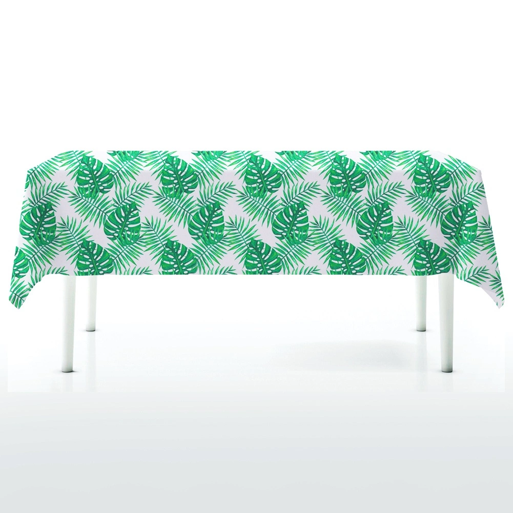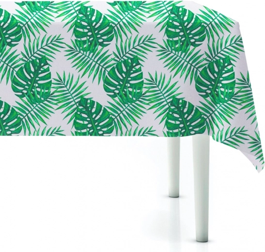 Stylový plamuvzdorný ubrus s motivem tropických listů monstery v rozměru 180 × 130 cm chrání stůl a dodá interiéru i venkovnímu posezení svěží vzhled. Je vyroben z lehkého a odolného materiálu EVA se spodní flanelovou vrstvou pro lepší přilnavost. Ideální pro domácnost, terasu i zahradu, snadno se čistí a spolehlivě chrání desku stolu před nečistotami a poškozením.