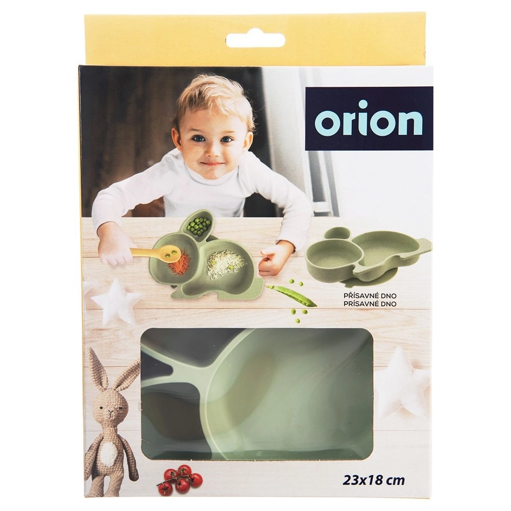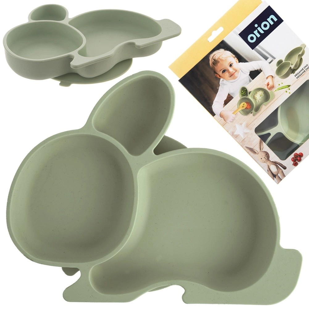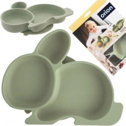 Silikonový dětský dělený talířek se zajíčkem, zelený 23 × 18,5 × 3,5 cm