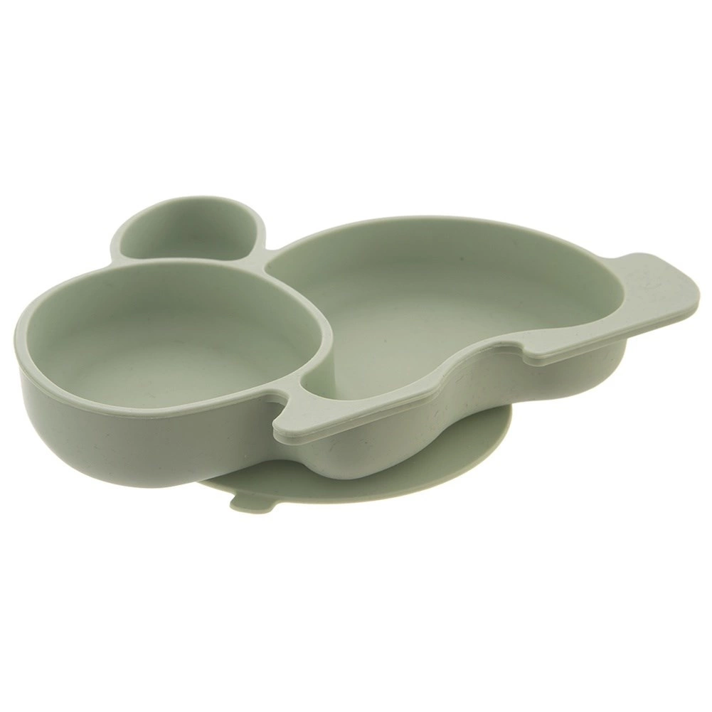Dětský silikonový talířek se třemi oddělenými přihrádkami pomáhá servírovat pestré porce a udržet jednotlivé složky jídla odděleně. Velká a mocná přísavka na spodní straně minimalizuje posouvání a převrhnutí, takže je ideální pro učení samostatného stolování.