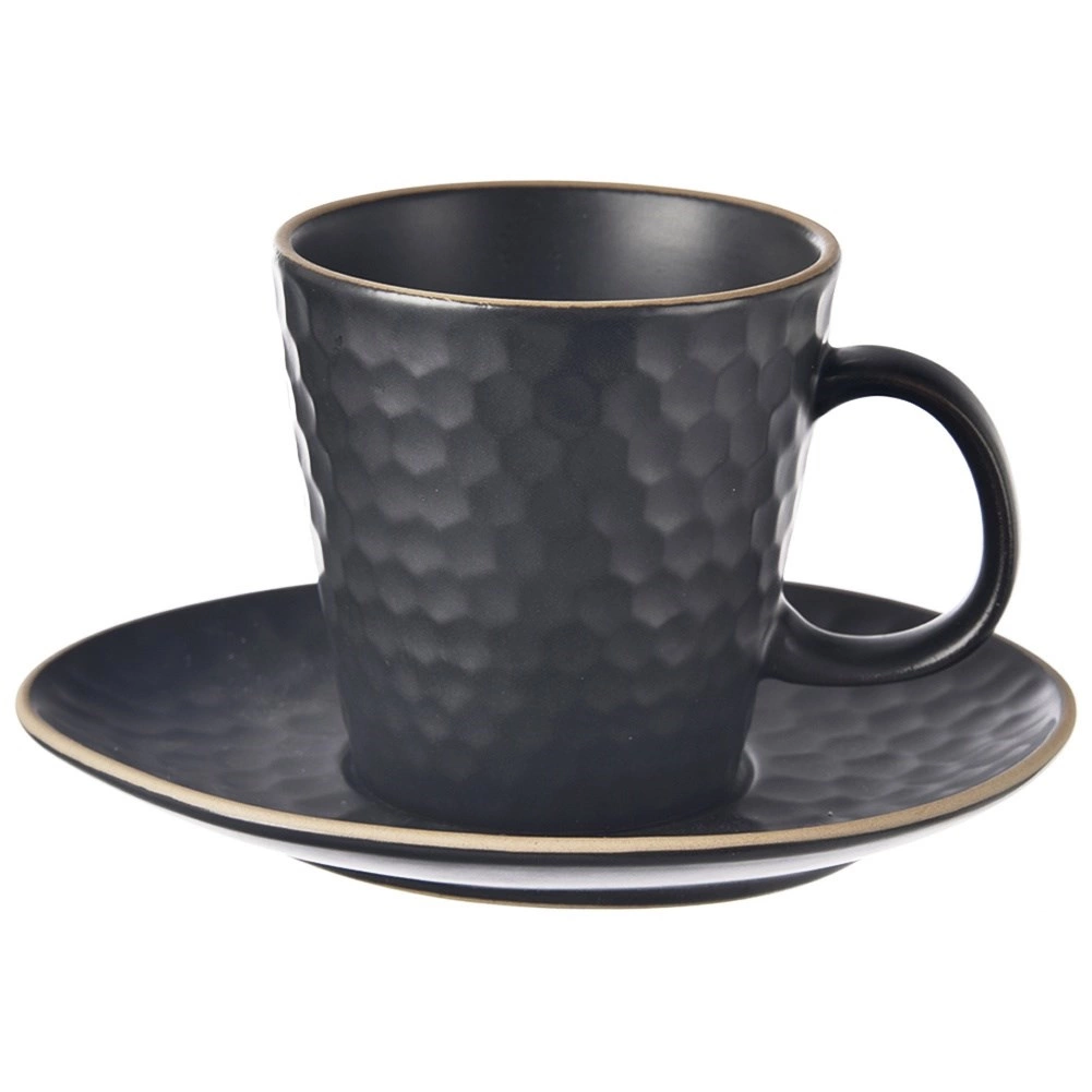 Vnější reliéf inspirovaný včelí pláství a matná černá glazura dodávají šálku prémiový vzhled, který vynikne v moderní kuchyni.