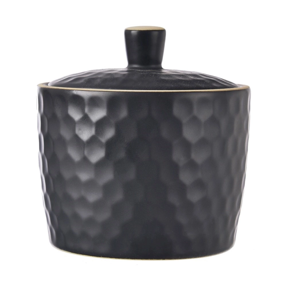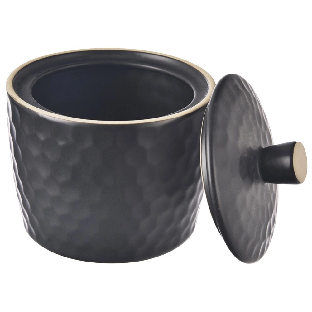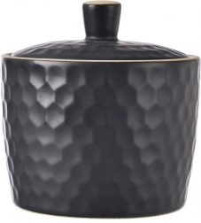 Tato elegantní cukřenka z řady TEA TIME vyniká moderním černým provedením a reliéfem ve stylu včelích pláství. Kvalitní kamenina zajišťuje dlouhou životnost a příjemný, matně strukturovaný povrch, který se dobře drží.