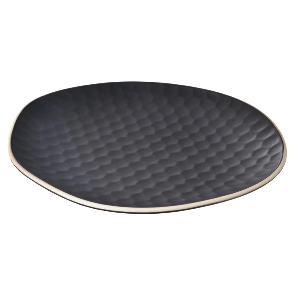 Matná, jemně kladívkovaná/„plástvová“ textura dodává talíři moderní vzhled a lepší úchop. Kontrastní světlý lem zvýrazní servírované pokrmy.