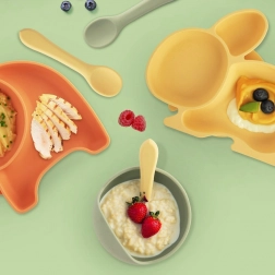 Praktická silikonová dětská lžička o délce 14 cm pro nejmenší do 3 let. Je měkká a bezpečná pro citlivé dásně, bez ostrých hran, má ergonomický tvar pro malé ručky a lze ji mýt v myčce. Ideální pro nácvik samostatného stravování.