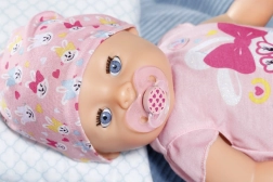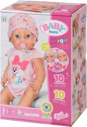 Panenka BABY BORN holčička 43 cm s kouzelným dudlíkem přináší realistické funkce bez baterií – pije, jí kaši, čůrá do plenky i na nočník, roní opravdové slzy a díky dudlíku otevírá a zavírá oči v jakékoli poloze. Měkké tělíčko Soft Touch, snadno pohyblivé končetiny a 10 doplňků pro nekonečné hraní a rozvoj dětské fantazie.