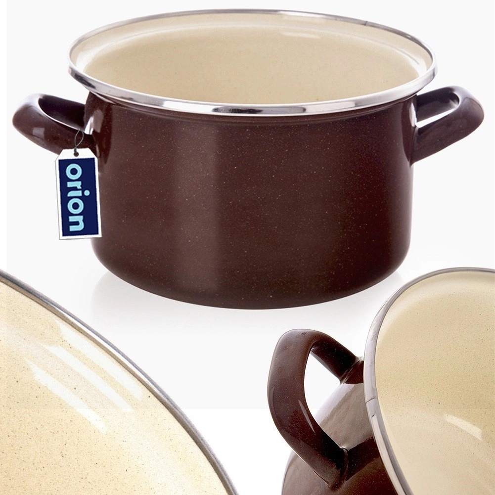 Emaliovaný hrnec BROWN v retro stylu spojuje nadčasový design a praktičnost pro každodenní vaření. Díky rovnoměrnému rozvodu tepla je skvělý pro polévky, omáčky i přílohy. Smalt je hygienický, neabsorbuje pachy ani chutě a je bezpečný i pro alergiky.