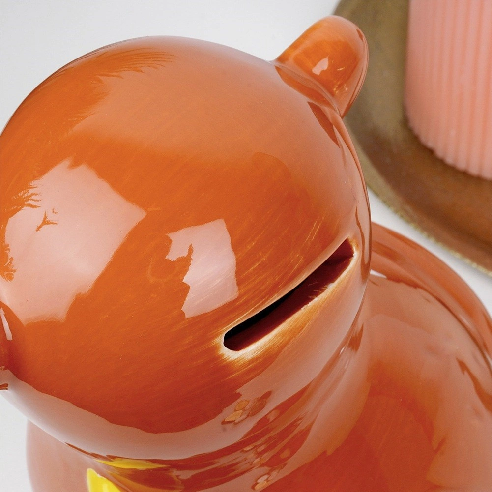 Tato dekorativní pokladnička ve tvaru opičky nadchne svým veselým vzhledem a funkčností. Díky otvoru se zátkou na spodní straně můžete naspořené peníze kdykoli pohodlně vyjmout, aniž by bylo nutné pokladničku rozbíjet. Lesklý keramický povrch se snadno udržuje a výrazné barvy přitahují pozornost v dětském pokoji, obýváku i kanceláři.