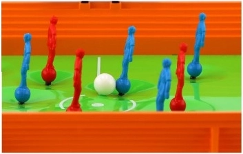 Lehká a odolná konstrukce z plastu, dvě branky a barevné týmy figurinek. Ideální do dětského pokoje, obýváku i na cesty.
