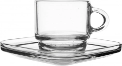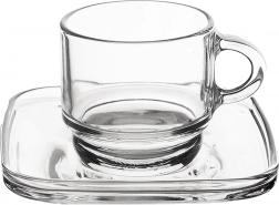 Čiré sklo zvýrazní barvu a cremu espressa, zatímco čtvercový podšálek dodá moderní vzhled i praktickou stabilitu.