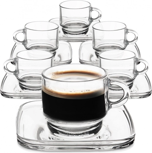 S touto sadou 6 skleněných šálků na espresso si vychutnáte kávu jako v kavárně. Transparentní sklo nechává vyniknout barvu i cremu, zatímco čtvercový podšálek dodává servírování elegantní vzhled a zachytí případné kapky. Díky kompaktním rozměrům je sada perfektní pro každodenní kávové rituály.
