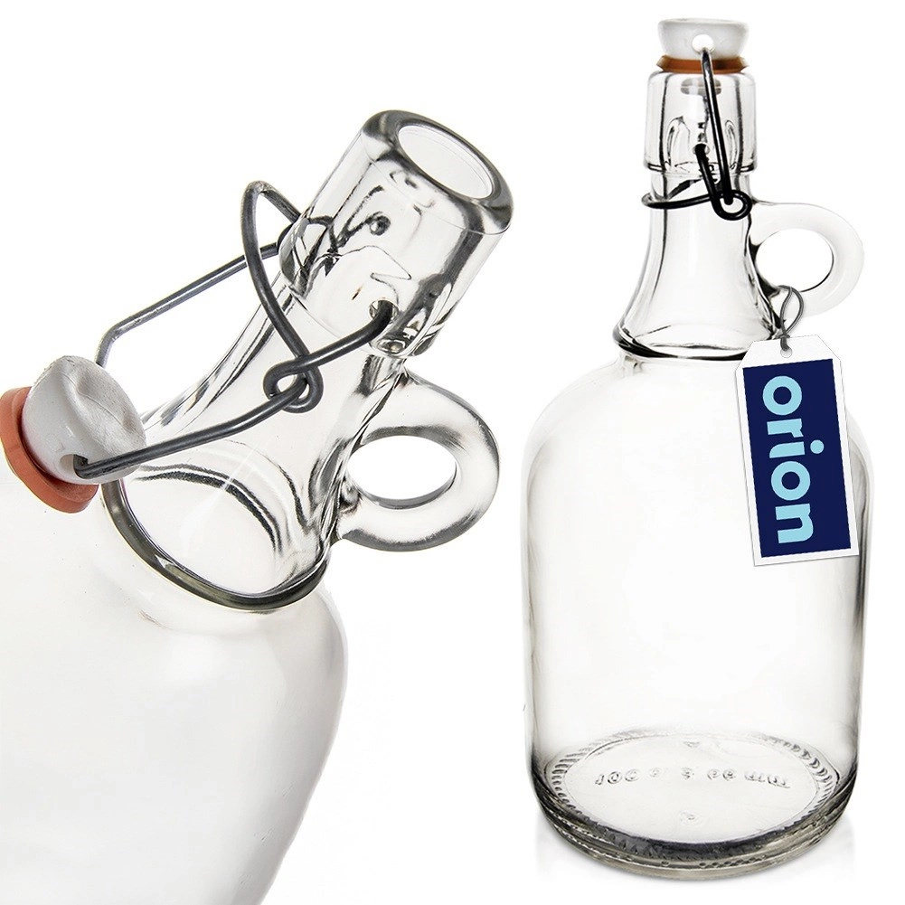 Elegantní skleněná láhev o objemu 500 ml se swingovým uzávěrem a silikonovým těsněním pro vzduchotěsné uzavření. Vyrobena z tlustého čirého skla, ideální pro domácí šťávy, limonády, likéry, víno i vodu. Praktické boční ucho pro pohodlné nalévání a přenášení. Retro design krásně zvýrazní obsah a hodí se do domácnosti i gastronomie.