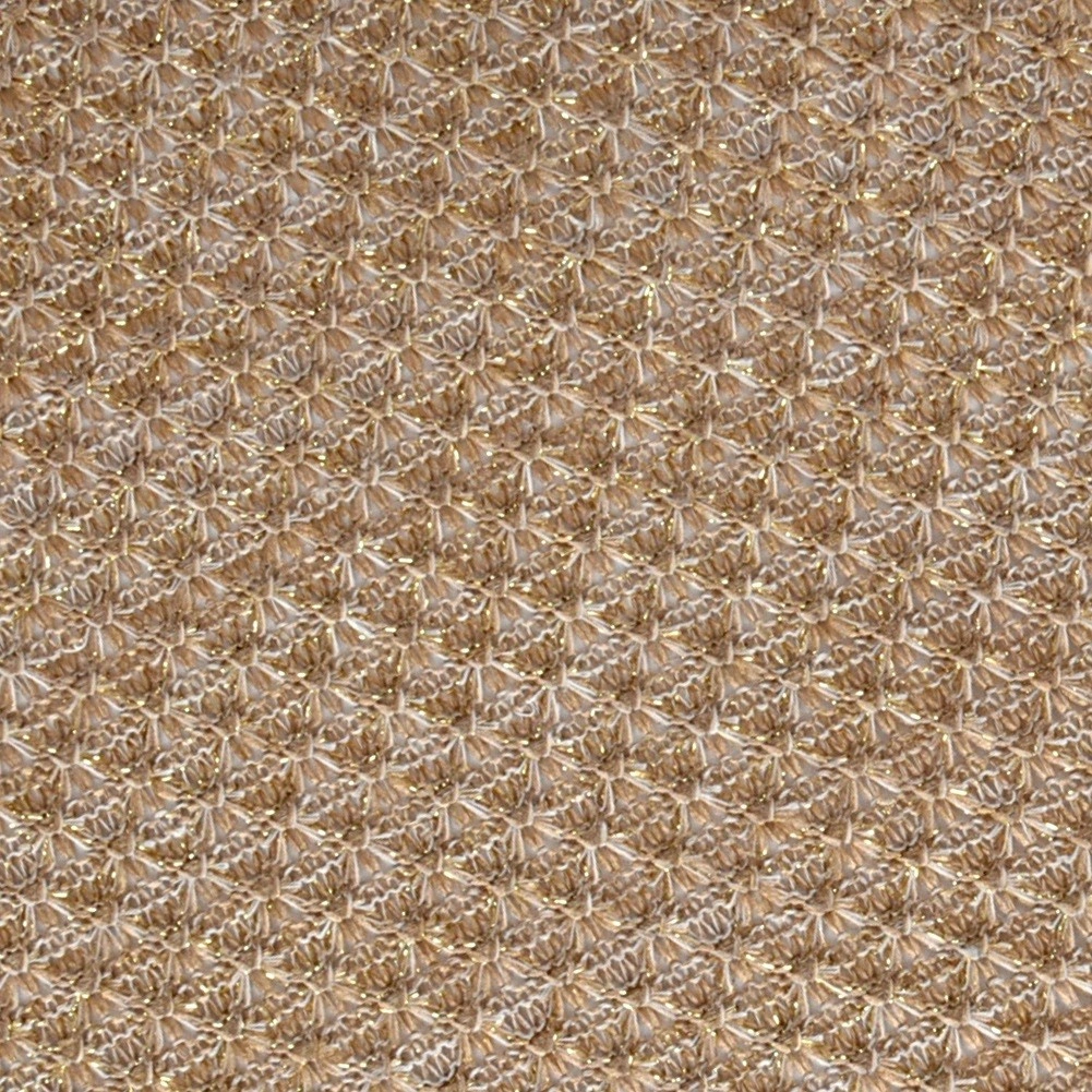 Tato univerzální dekorativní podložka je ideální pro každodenní stolování i slavnostní příležitosti. Ciemnobéžový odstín propletený zlatou nití vytváří efektní vzhled, který podtrhne krásu vaší tabule a zároveň chrání povrch stolu.