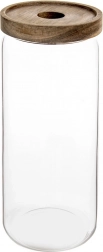 Praktická skleněná dóza o objemu 1,6 l s dřevěným víčkem a silikonovým těsněním udrží vaše potraviny déle čerstvé a voňavé. Odolné borosilikátové sklo je ideální pro každodenní použití, průhledné stěny umožní okamžitou kontrolu obsahu a elegantní vzhled zkrášlí každou kuchyň. Dóza je vhodná na kávu, těstoviny, ořechy, müsli či jiné suché suroviny a skleněnou část lze mýt v myčce.