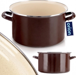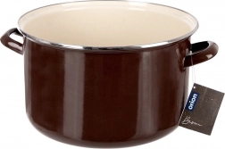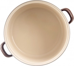 Emailyovaný hrnec v retro stylu zaujme odolným zpracováním, velkým objemem a univerzálním využitím v kuchyni. Vnější hnědé provedení, krémový vnitřek a nerezový okraj dodávají nádobí elegantní vzhled. Emalia je zdravotně nezávadná a vhodná i pro alergiky.