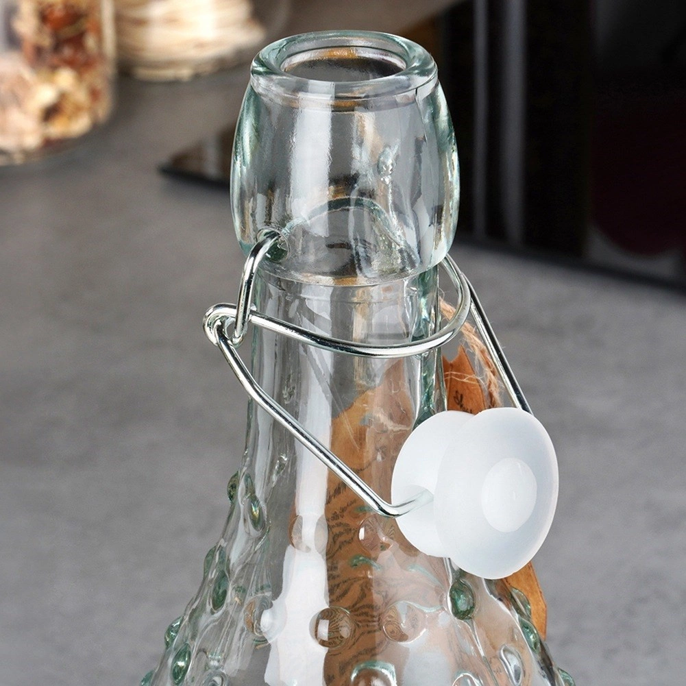 Tato retro skleněná láhev 1 l je ideální pro servírování i skladování nápojů doma i v gastronomii. Odolné čiré sklo nechá vyniknout barvám nápojů, zatímco klipové uzavírání se silikonovým kroužkem spolehlivě brání protékání a pomáhá uchovat svěžest.