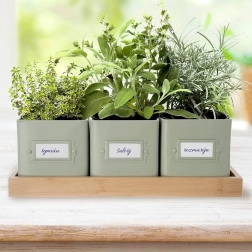 Tato kompaktní sada tří čtvercových květináčů se stojánkem je skvělá pro přehledné pěstování bylinek přímo po ruce. Díky praktickému bambusovému podnosu zůstanou květináče pohromadě, povrch bude chráněn před vlhkostí a vaše kuchyň získá svěží přírodní akcent.
