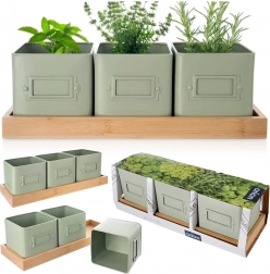 Stylová sada tří květináčů na bylinky se stabilním bambusovým podnosem propojí praktičnost s elegancí. Ideální pro pěstování čerstvých bylinek v kuchyni či na parapetu. Každý květináč má vyhrazené místo pro popisek a hodí se i pro menší pokojové rostliny. Pastelově zelený design, kompaktní rozměry a bambusová základna pro ochranu povrchu.