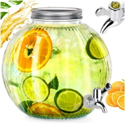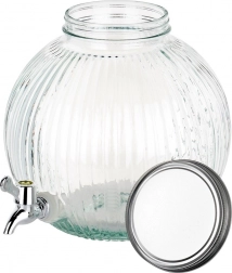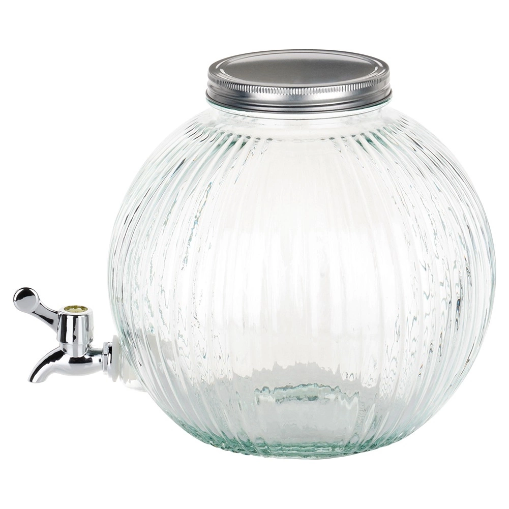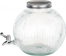 Stylový kulatý nápojový zásobník ze silného skla s objemem 5,5 l usnadní servírování studených nápojů pro rodinu i hosty. Díky integrovanému kohoutku naléváte pohodlně a bez rozlévání, zatímco šroubovací kovové víko chrání obsah před hmyzem a nečistotami.