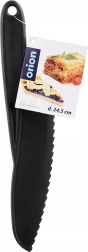 Tento zoubkovaný nůž na dorty z kolekce BLACKLINE je ideální pro krájení piškotových korpusů, porcování dortů i koláčů. Lehká a odolná plastová konstrukce v černé barvě zajišťuje dlouhou životnost a pohodlné každodenní používání.
