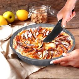 Ostré zoubkované ostří si poradí s jemnými i křehkými těsty bez drcení, ergonomická rukojeť umožní jistý úchop a kontrolu řezu. Nůž se jednoduše čistí a je vhodný do myčky nádobí, takže šetří čas i námahu.