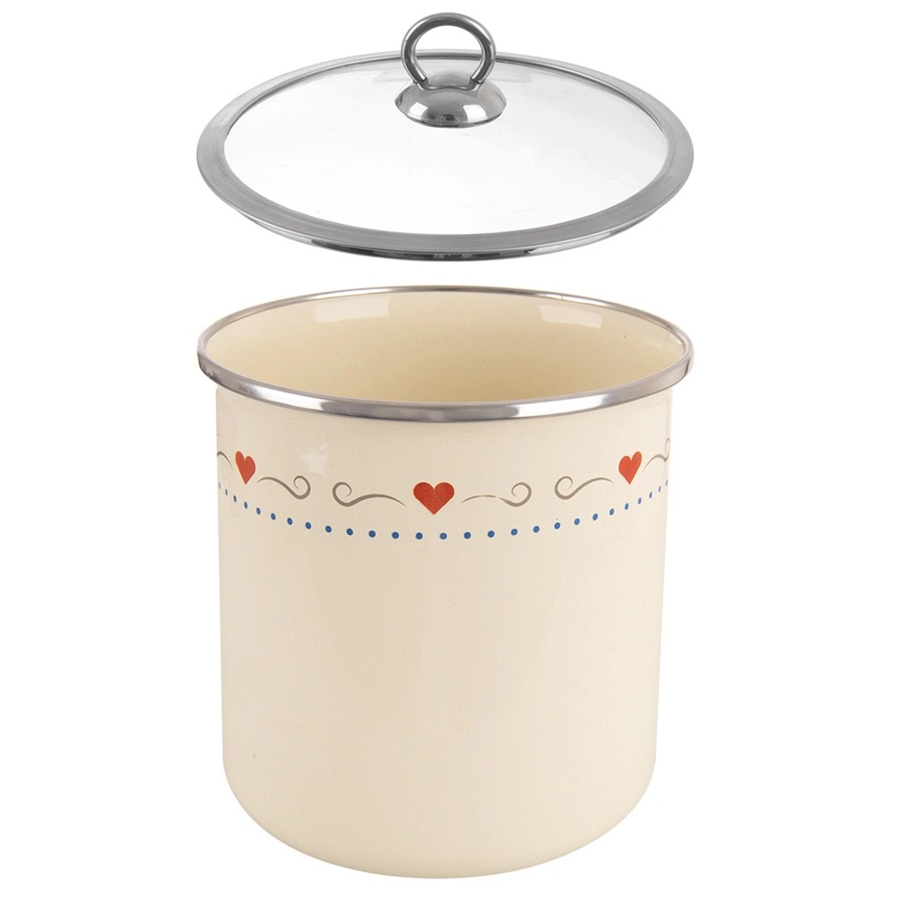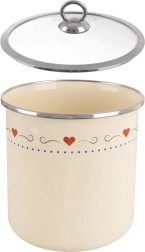 Kvalitní smalt na oceli je zdravotně šetrný, snadno se čistí a odolá každodennímu používání. Krémová barva se srdíčky oživí každou kuchyň.