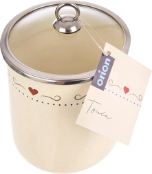 Stylová kuchyňská dóza o objemu 1,4 l z emaliované oceli v krémové barvě se srdíčky a průhledným skleněným víkem udrží potraviny déle čerstvé. Ideální na mouku, cukr, kávu, čaj a sypké potraviny. Díky nerezovému lemu je odolná a snadno se čistí, navíc je vhodná do myčky.
