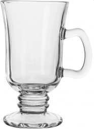 Elegantní sklenice na latte o objemu 250 ml se stabilní nožkou a pohodlným uchem je ideální pro podávání latte, cappuccina, čaje i svařeného vína. Vyrobena z odolného čirého skla, vhodná pro každodenní použití doma i v gastronomii a lze mýt v myčce.