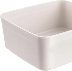 Tento univerzální box na potraviny v elegantní béžové barvě je ideální pro uchovávání zbytků, porcí jídel i sypkých surovin. Pevné víčko dobře přiléhá k okrajům nádoby, což zajišťuje spolehlivou těsnost a svěžest uložených potravin.