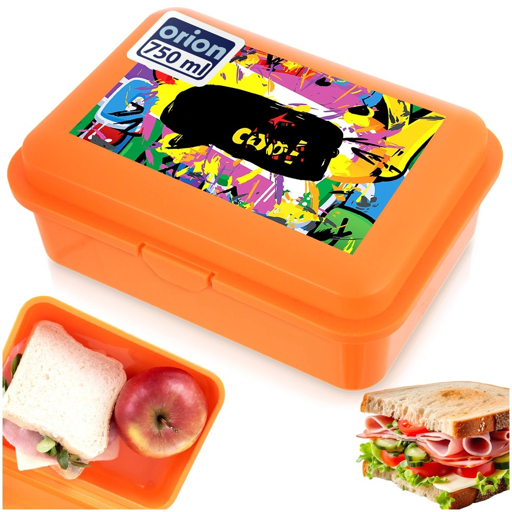 Udržte svačinu čerstvou a po ruce. Oranžový svačinový box s veselým potiskem Cool je perfektní pro děti do školy i pro dospělé na cesty. Díky pevnému klipsu zůstane obsah bezpečně uzavřený a kompaktní rozměry se vejdou do batohu i kabelky.