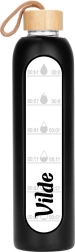 Černý silikonový obal chrání sklo a zajišťuje jistý úchop, přírodní bambusové víčko s poutkem usnadňuje přenášení.