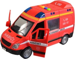 Tato hasičská dodávka potěší všechny malé záchranáře realistickým provedením a funkcemi. Po stisknutí tlačítek uslyšíte český hlas dispečinku a posádky a uvidíte blikající maják. Díky setrvačníkovému pohonu auto jednoduše postrčíte a rozjede se vpřed.