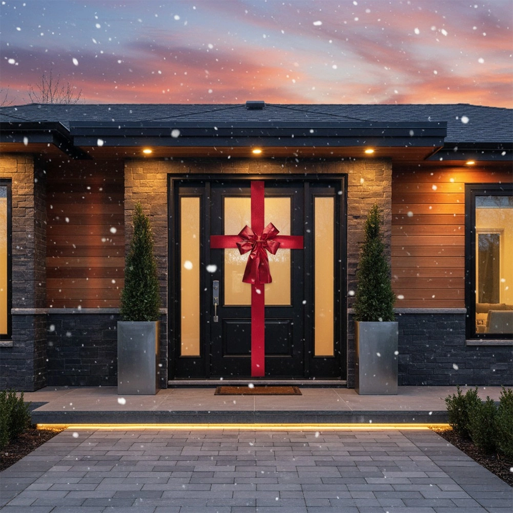 Vneste do svého domova opravdovou sváteční atmosféru během pár minut. Tato výrazná červená mašle se stuhou o délce 4,3 m umožní ozdobit standardní dveře jak vertikálně, tak horizontálně, a vytvoří efekt dárkově zabalených dveří. Lesklý povrch krásně odráží světlo a dodává výzdobě luxusní a slavnostní vzhled.