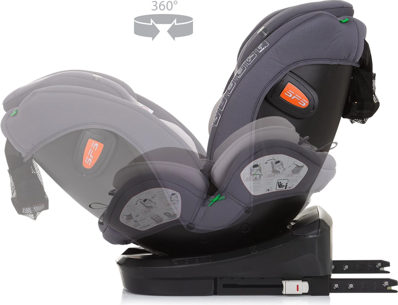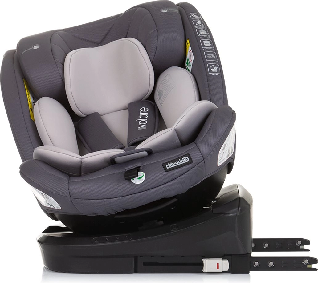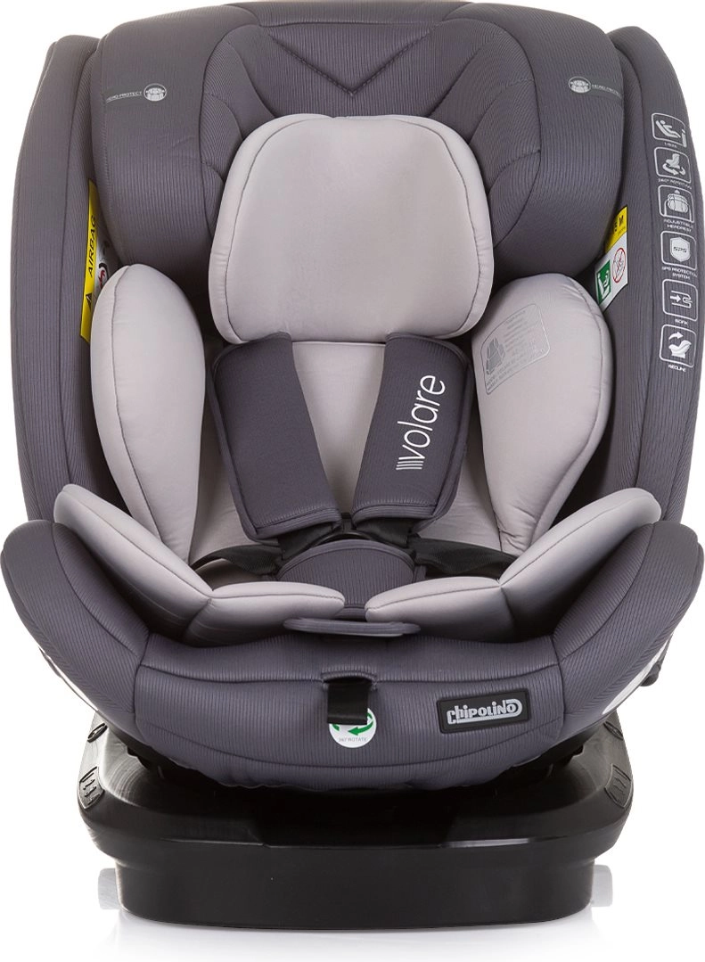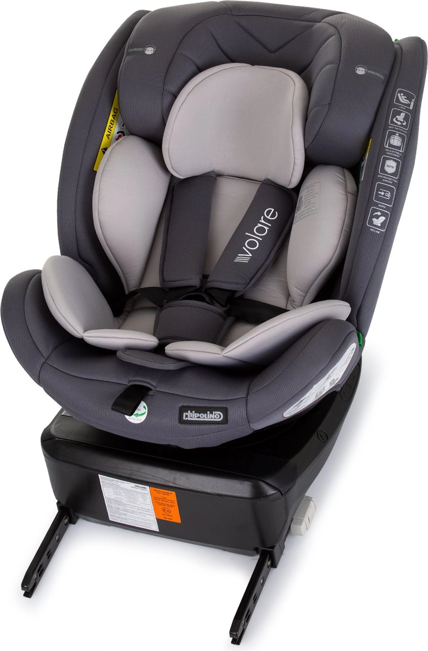 CHIPOLINO Volare i-Size roste s vaším dítětem od novorozence až do 150 cm výšky. Díky základně s 360° otáčením je připoutání i překlápění mezi protisměrem (40–105 cm) a směrem jízdy (od 100 cm) rychlé a pohodlné. ISOFIX a Top Tether zajišťují pevné a bezpečné ukotvení, zatímco zesílené bočnice poskytují vynikající ochranu proti bočnímu nárazu.