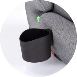 - Pohodlí na cestách: měkké polstrování, nastavitelná opěrka hlavy, pratelný potah, držák na nápoj