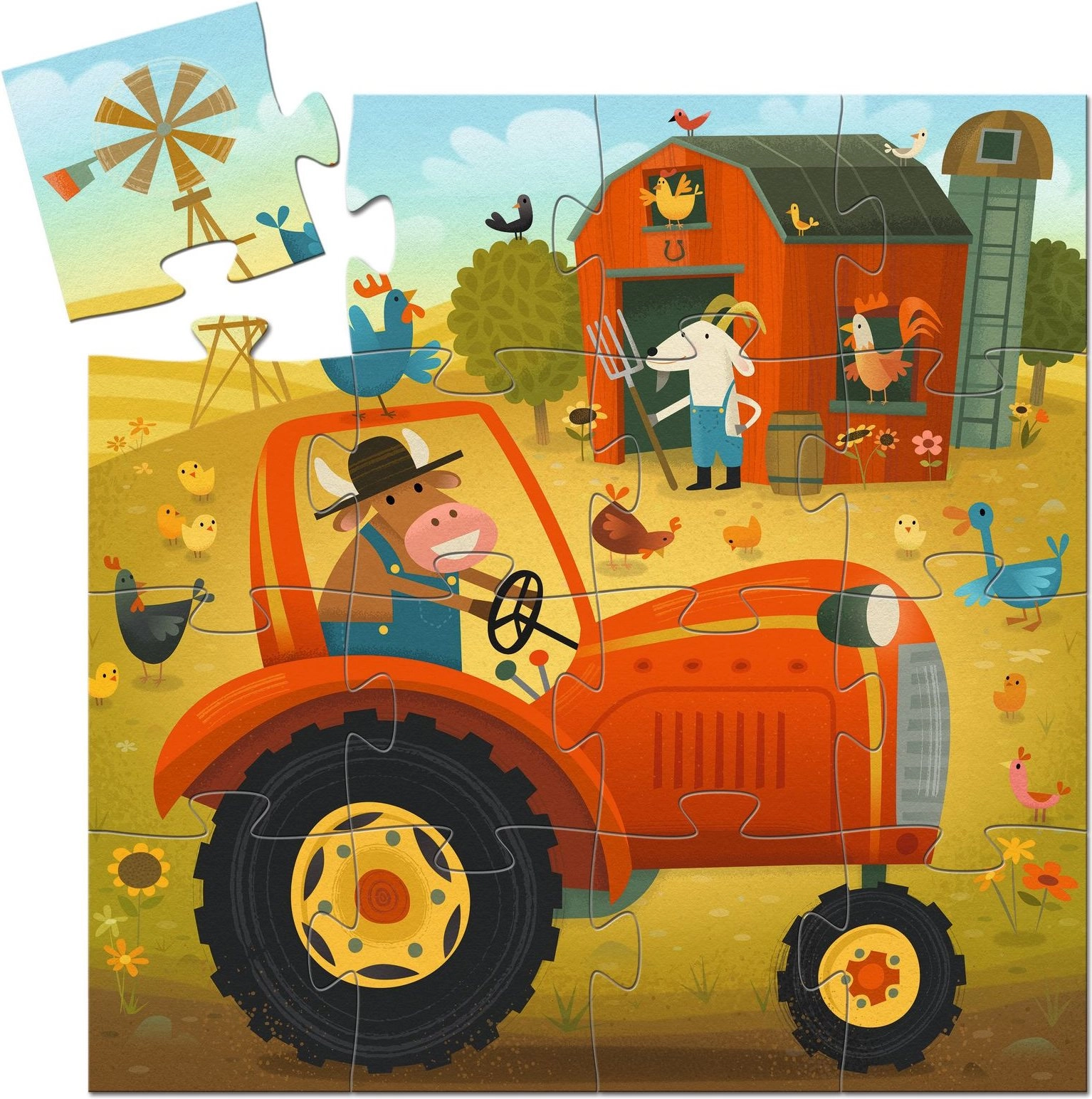 Hurá na farmu! Veselé puzzle s motivem traktoru potěší všechny malé milovníky venkova. Díky 16 dílkům je ideální pro první skládání, rozvíjí jemnou motoriku, logické myšlení a trpělivost. Praktická krabička usnadňuje ukládání i přenášení.