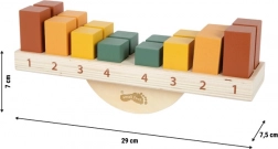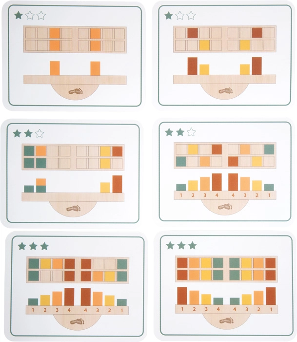 Tato Montessori balanční hra z kvalitního FSC certifikovaného dřeva seznamuje děti s principy rovnováhy, hmotnosti a páky. Děti umísťují barevné bloky na vyznačené pozice s čísly a sledují, jak se mění rovnováha. Mohou tvořit vlastní stavby, nebo plnit zadání z kartiček s různou obtížností.