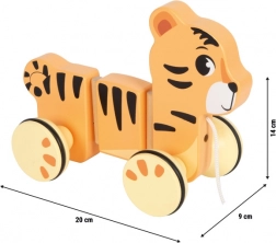 Tento kvalitně zpracovaný tahací tygr vyniká ekologickými materiály a bezpečným designem. Hladké zaoblené hrany, tichý chod a pevné spojení segmentů zajišťují pohodlné a bezpečné používání doma i na procházkách. Děti si zamilují jeho přívětivý výraz a plynulé vlnění při pohybu.
