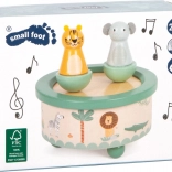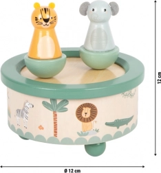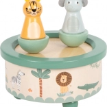 Kouzelná dřevěná hrací skříňka s motivem safari od small foot okouzlí děti i rodiče. Na magnetických podstavcích se do rytmu melodie „Twinkle, Twinkle, Little Star“ točí dvě roztomilé figurky – tygr a slon. Vyrobena ze 100% FSC dřeva, s jemnými barvami a moderním designem se stane půvabnou dekorací dětského pokoje a zároveň podporuje rozvoj motoriky, představivosti a lásky k hudbě.