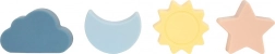 Čtyři dílky ve tvaru slunce, měsíce, hvězdy a mráčku podporují rozvoj jemné motoriky, koordinace a smyslového vnímání.